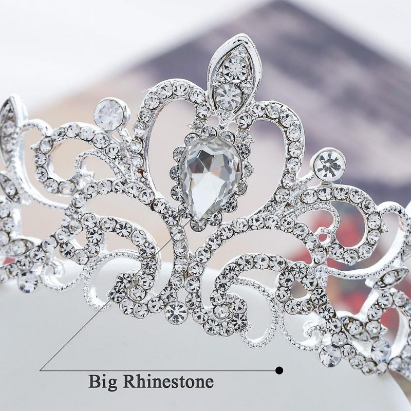 Diese atemberaubende silberne Tiara ist einer Prinzessin würdig. Verfügt über wunderschöne Wirbel, die mit funkelnden Kristallen und Strasssteinen besetzt sind. Es passt perfekt zu weißen und weißen Diamant-Brautkleidern.