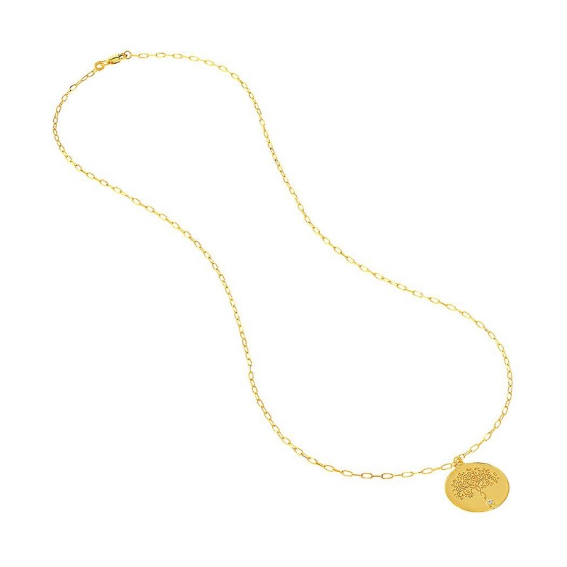 Verstellbare Halskette mit Medaillon-Anhänger „Lebensbaum“ aus 14 Karat Gelbgold mit 0,015 Karat Diamanten – 55,9 cm – in 14 Karat Gelbgold – Schmuckschatulle als Geschenk enthalten ::: ::: [Pflege und Handhabung: Diamant] – Mit warmem Seifenwasser und einer weichen Bürste oder einem Tuch reinigen. :::