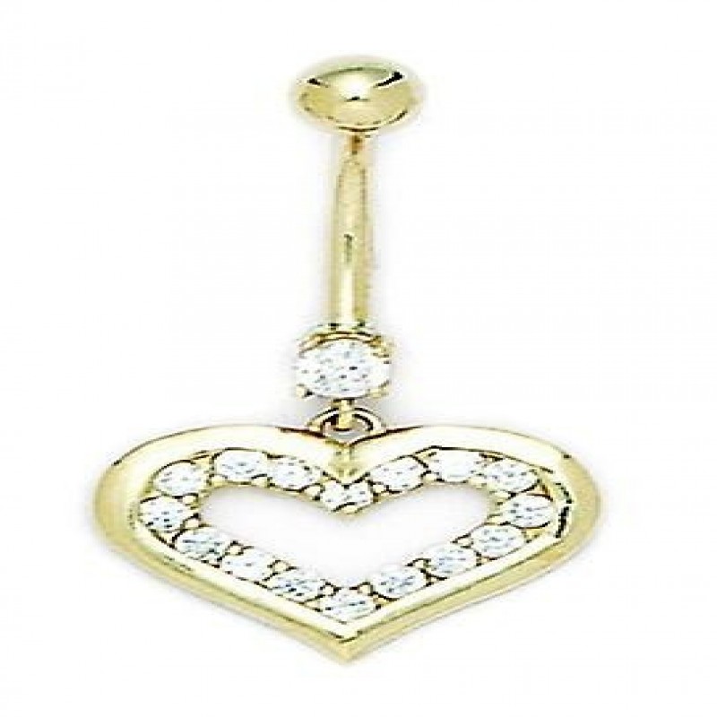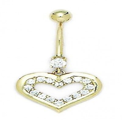 Körperschmuck aus 14 Karat Gelbgold mit Zirkonia, baumelndes Herz, Stärke 14, Maße 33 x 17 mm, in 14 Karat Gelbgold, Schmuckschatulle als Geschenk enthalten ::: [Mögliche Verbesserungsmethoden: Zirkonia] – Synthetisch. Einige sind mit einem Produkt beschichtet, das den Stein haltbarer macht. ::: [ Pflege und Handhabung: Zirkonia ] - Mit warmem Seifenwasser und einem weichen Tuch reinigen.