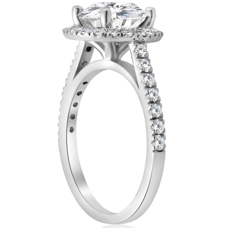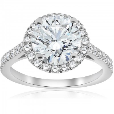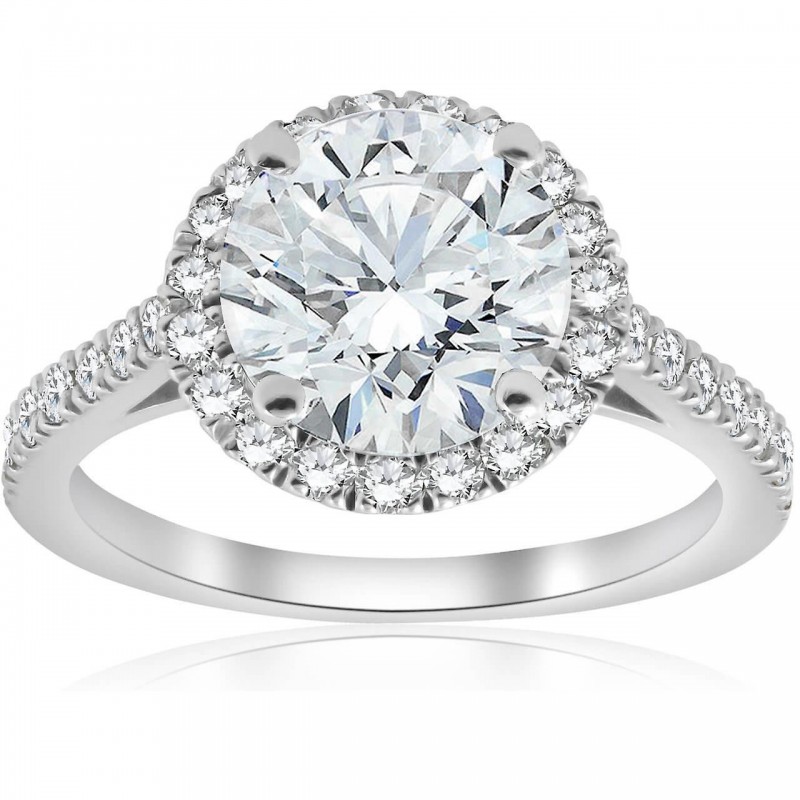 Verlobungsring aus 14 Karat Weißgold mit 2 1/2 Karat rundem Diamanten im Halo-Schliff