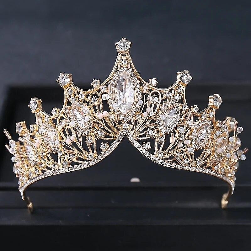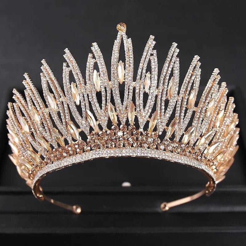 Luxuriöse goldfarbene Hochzeitsdiademe und -kronen mit Kristallen und Strasssteinen für Partys